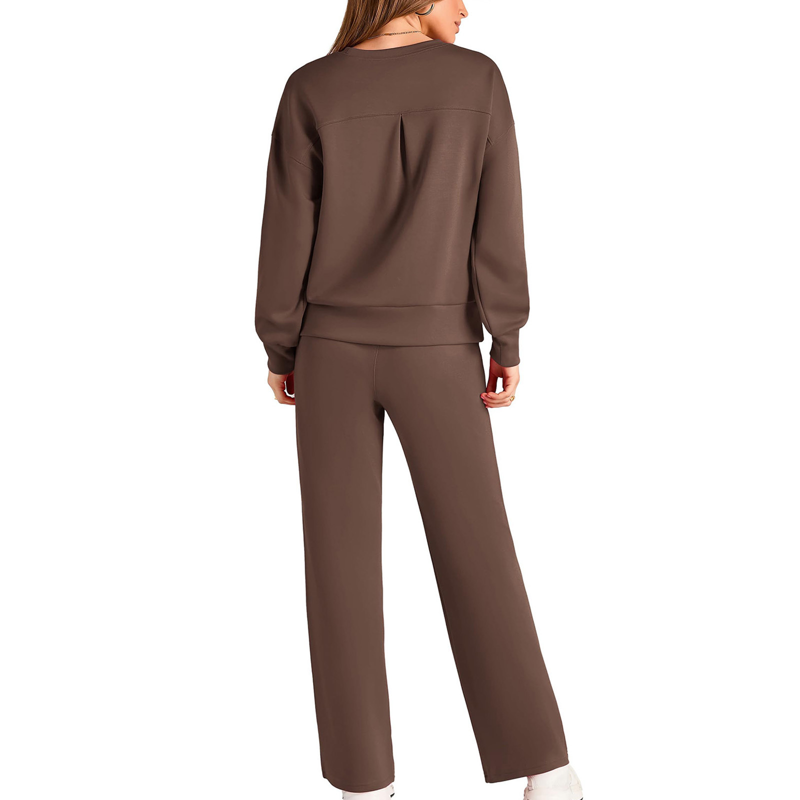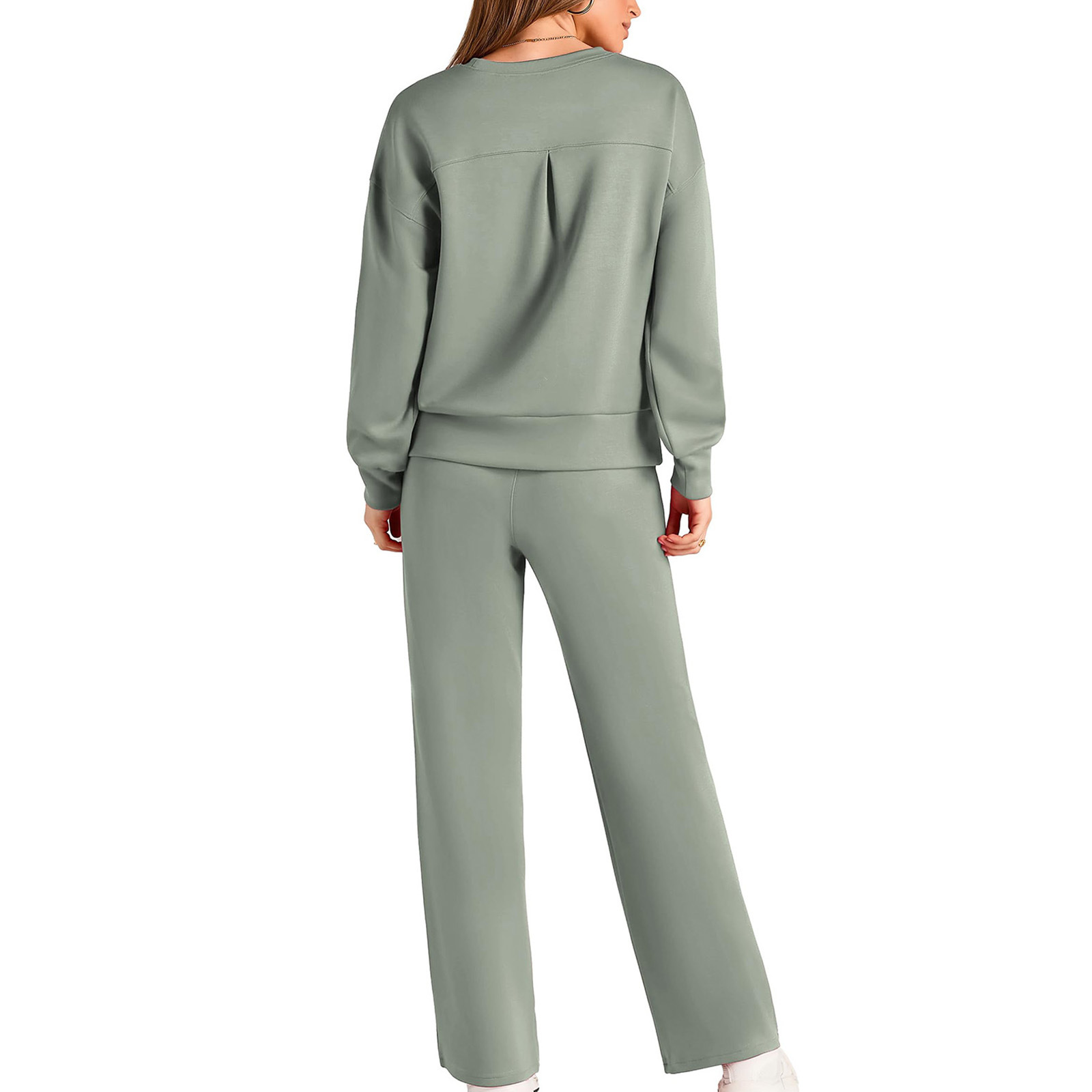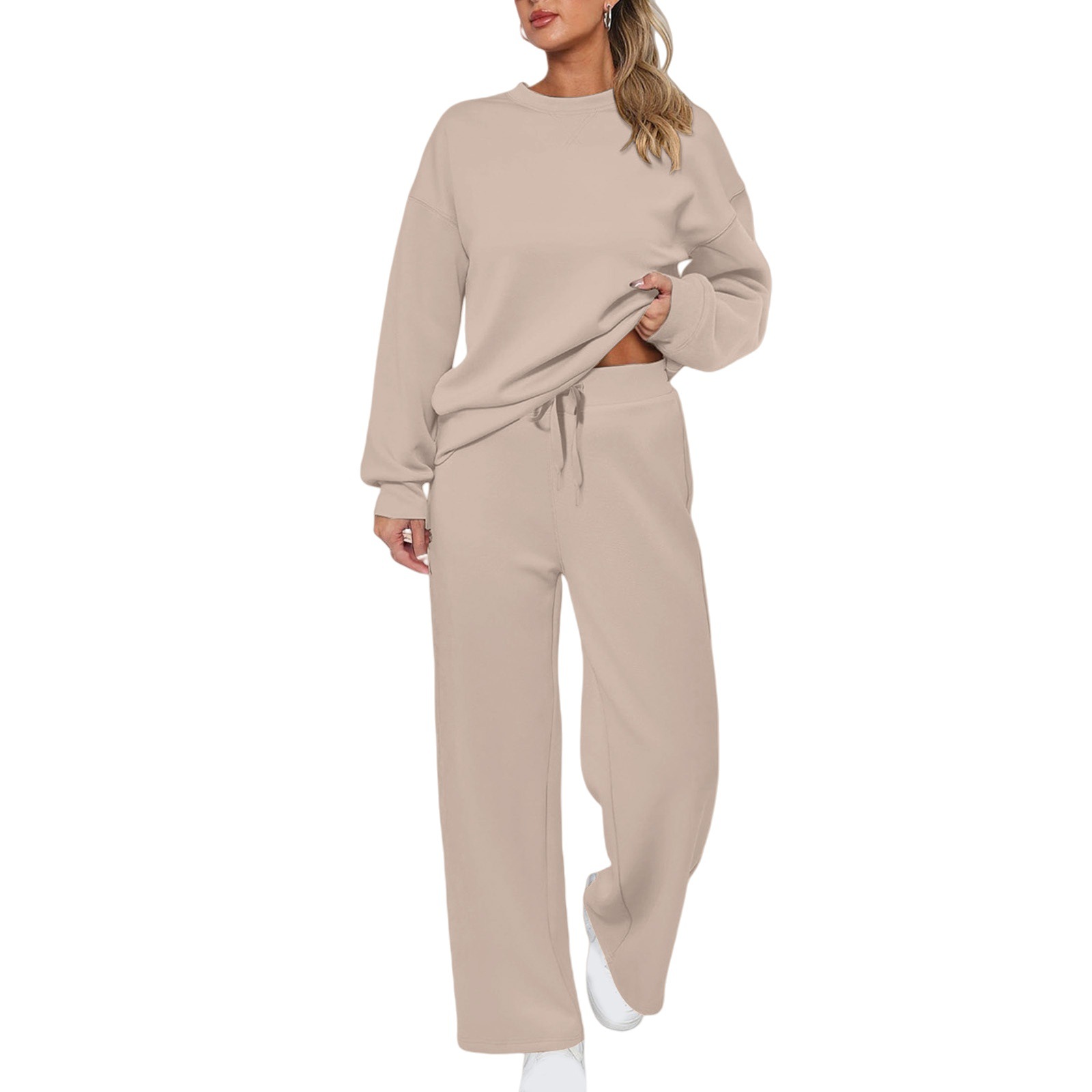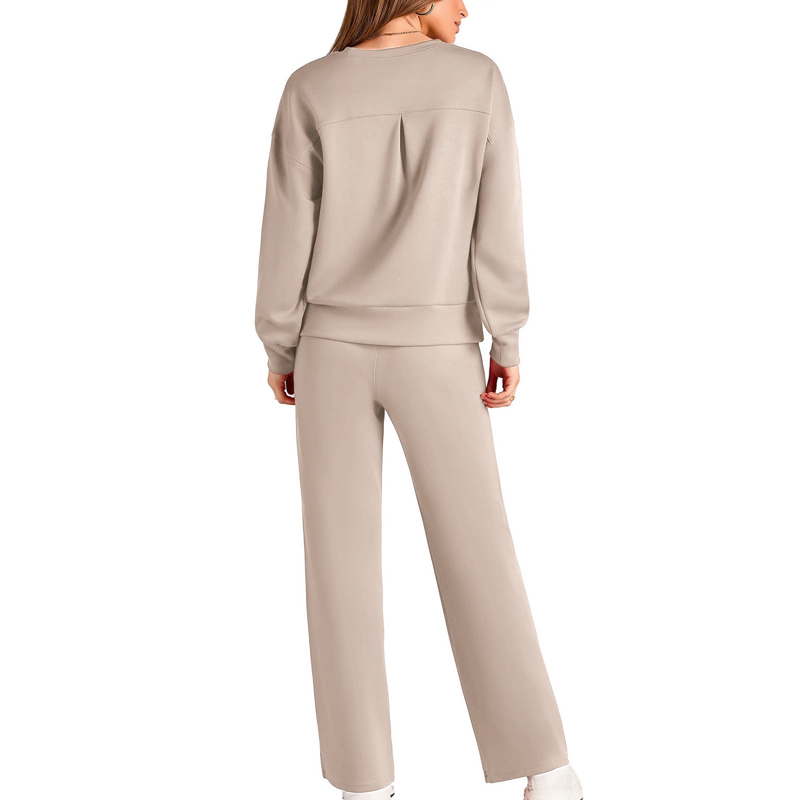 Conjunto Casual de Sudadera de Manga Larga y Pantalón Ancho con Bolsillos – Outfit Cómodo para Mujer