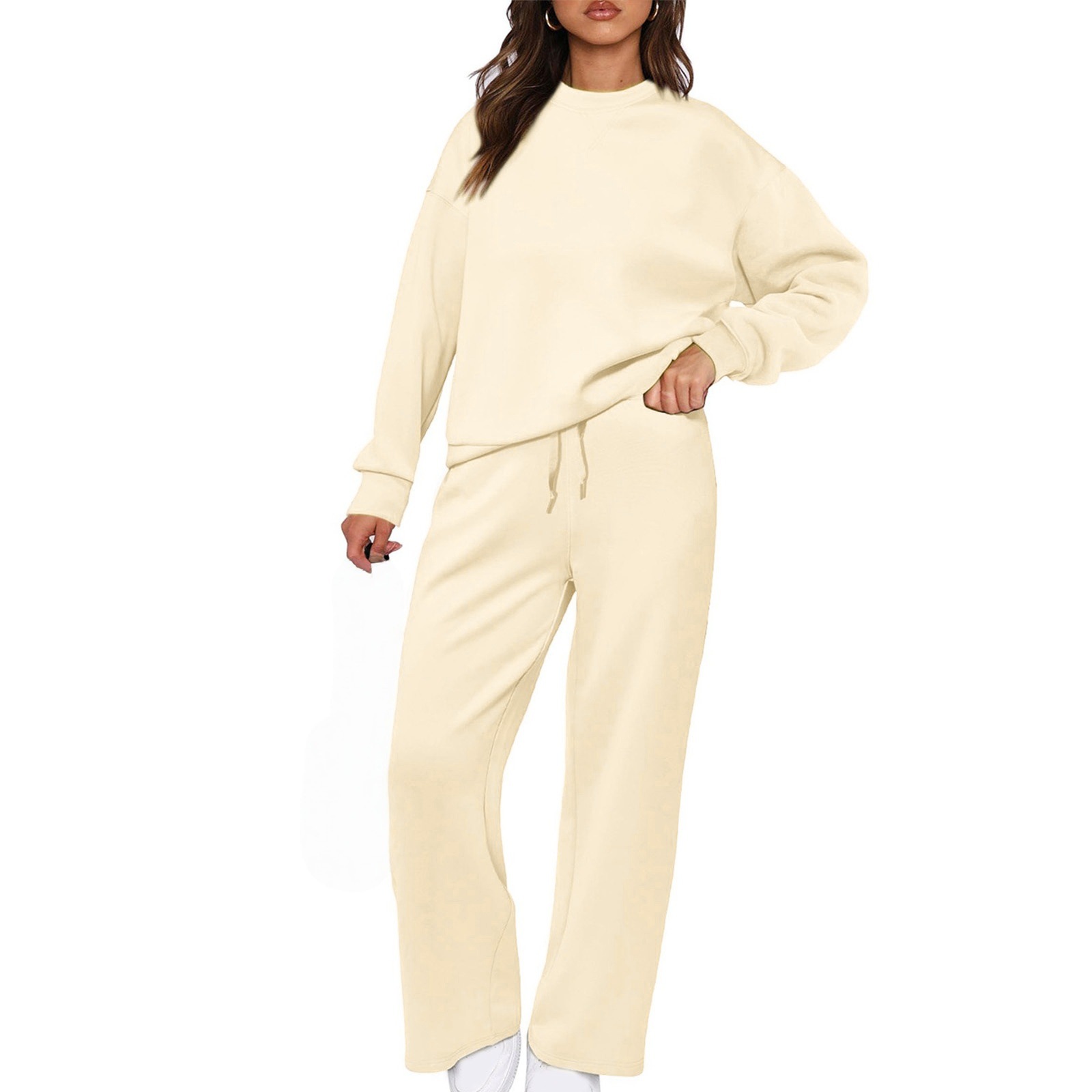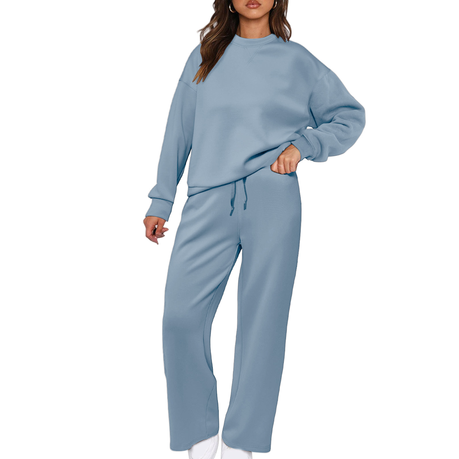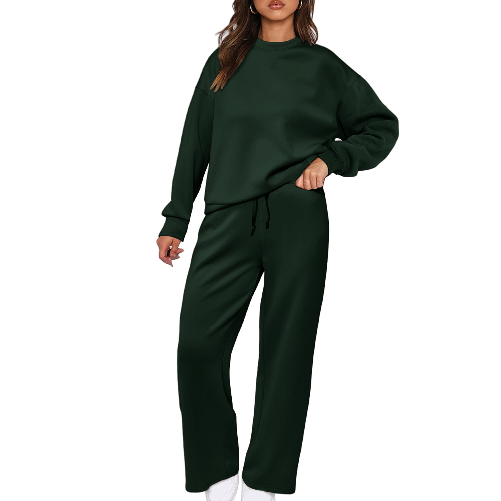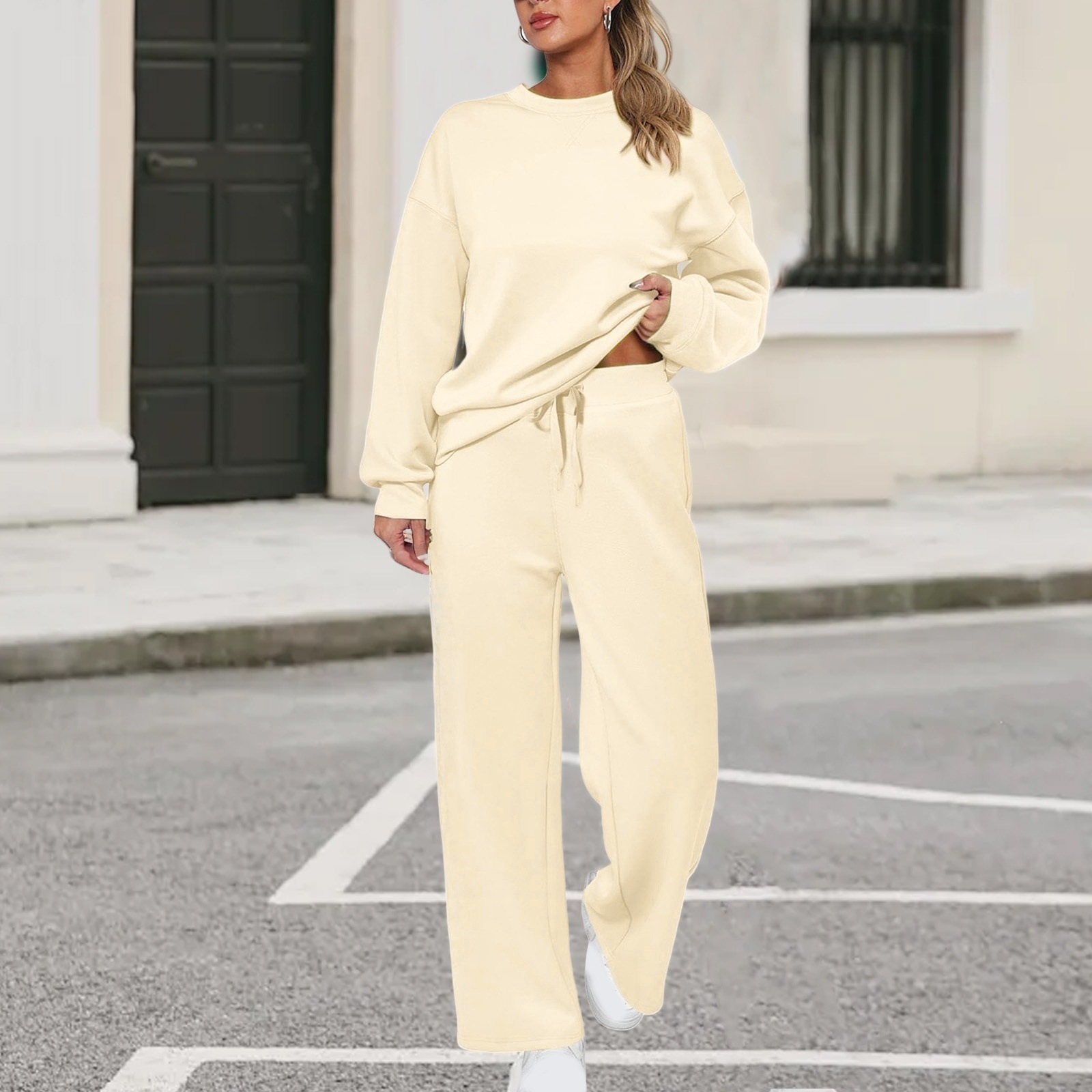 Conjunto Casual de Sudadera de Manga Larga y Pantalón Ancho con Bolsillos – Outfit Cómodo para Mujer