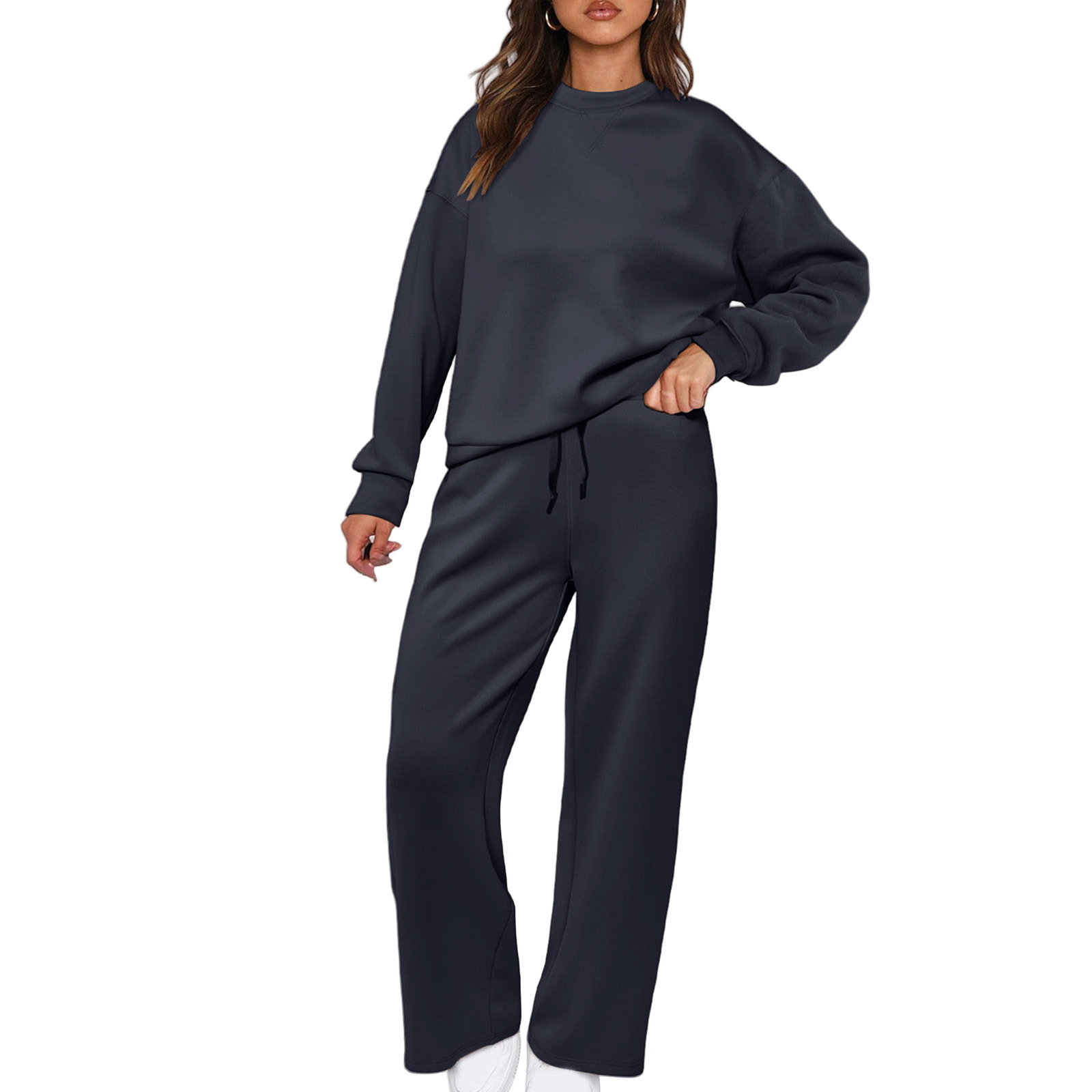 La sudadera de manga larga brinda una sensación suave y agradable, mientras que el pantalón de pierna ancha con bolsillos aporta libertad de movimiento y practicidad. Su diseño versátil permite combinarlo fácilmente con zapatillas o calzado casual, convirtiéndolo en un outfit moderno y funcional para cualquier temporada.