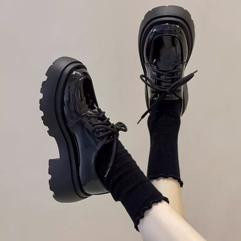 Zapatos de Mujer de Cuero Estilo Británico – Suela Gruesa Chunky para Año Nuevo